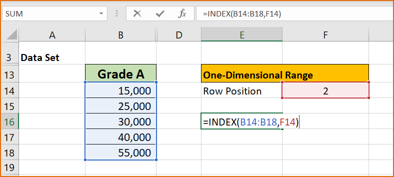 Note this while inputting the INDEX formula – You define a lookup range, called the array, in the first argument. Then you tell Excel how many rows down to go via the second argument. Then, optionally, you tell Excel to go a certain number of columns across via the third argument.